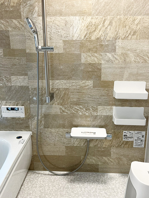 浴槽横の手すりと手すり兼用のシャワーバーで出入りも安心です。
