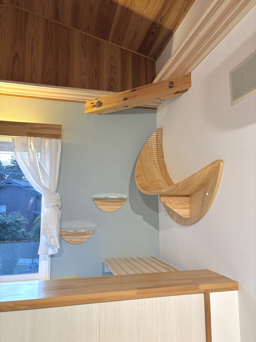 高所を好む猫ちゃんが安全に移動できるように棚板を設置。