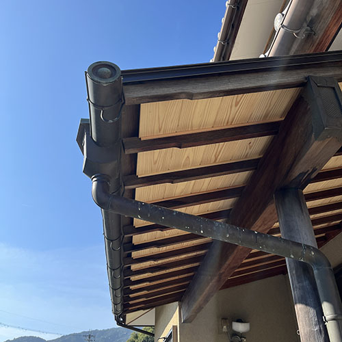 木目の細かいしっかりした構造材と銅の樋はそのまま残して、天井部分は下から張上げました。
